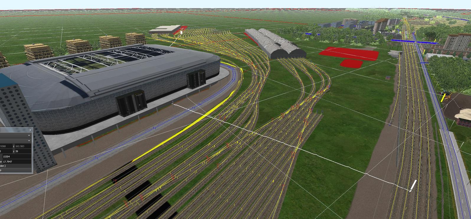 Byggnaderna är självfallet bara tillfälliga för att markera ut vilka spår som ska gå in i vagnhallarna.