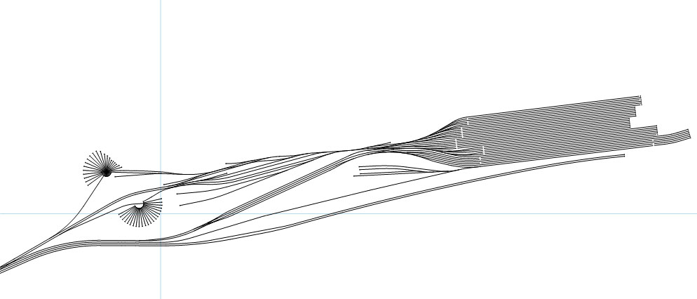Ja, så här långt har jag kommit i Sävenäs stora bangård. Det blev trettio spår mot verklighet över 40 spår. Sen kommer en bangård till på sex spår mot tio, för att undvika många objekt i tilesen. |